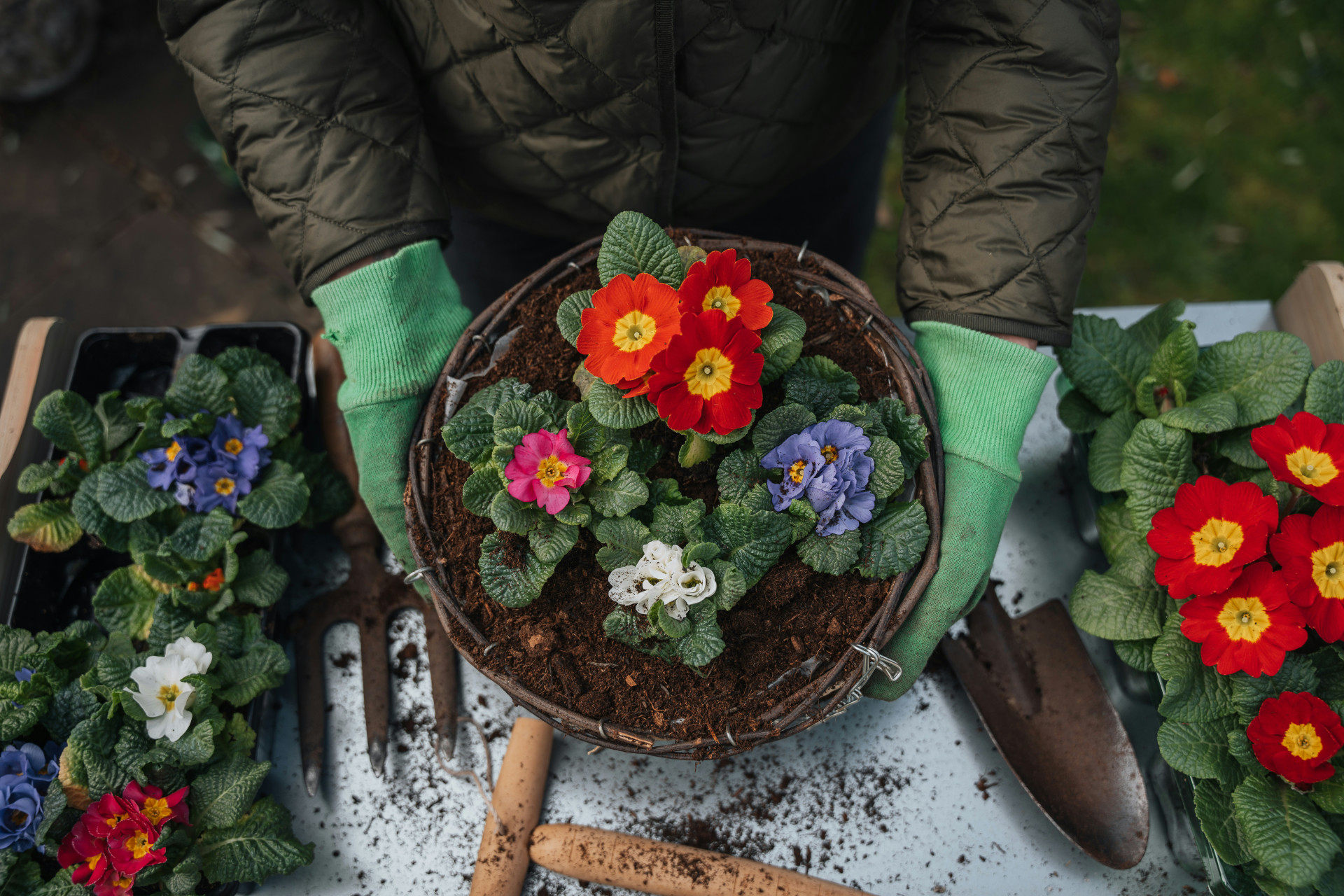 Achte auf eine harmonische Mischung aus hohen und niedrigen Pflanzen, großen und kleinen Blüten sowie unterschiedlichen Formen und Texturen – so entstehen später besonders lebendige Sträuße.